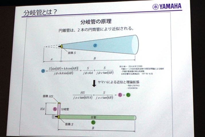 分岐管の原理は、玉川大学工学部 実吉純一教授による理論。これを基に、ヤマハが理論拡張してVenovaに取り入れています