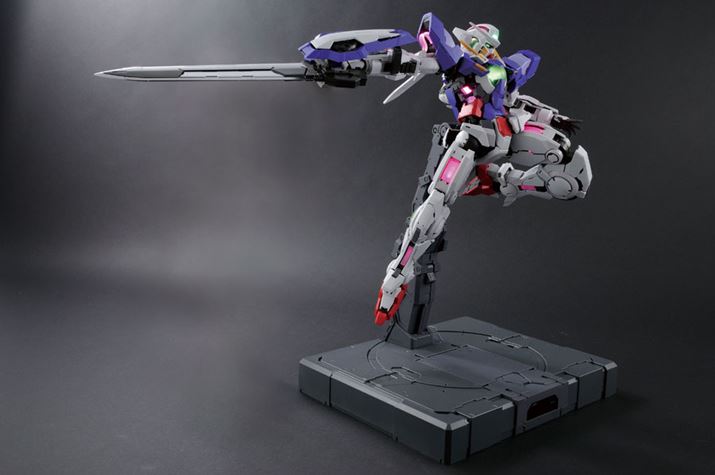 機体各所からケーブルを露出させ、「GNドライヴ」からの粒子伝達構造を再現した内部フレームを採用。さらに装甲展開ギミックにより、整備中のシーンなどをほうふつとさせるディスプレイを楽しめる。LED非搭載内部フレームが付属するバージョンも用意され、メーカー希望小売価格は19,440円