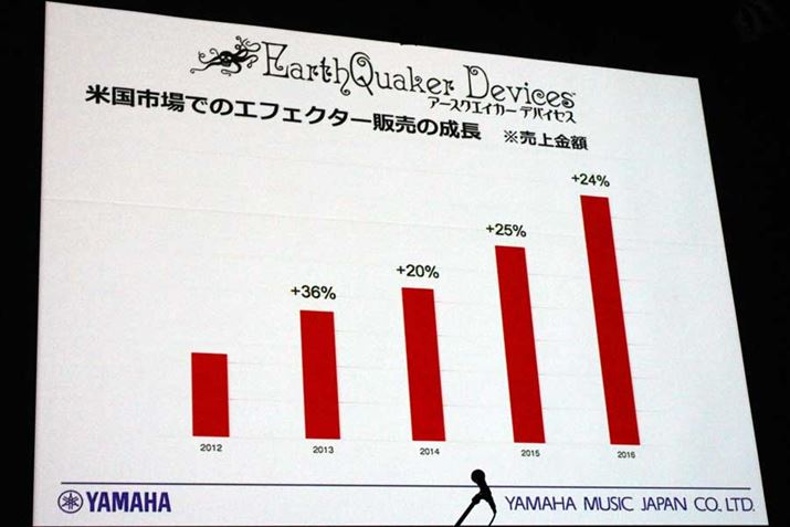 最近、このエフェクター市場がわりと盛り上がりを見せていて、米国で開催される世界最大規模の楽器展示会「NAMM Show」では、新規エフェクターブランドの出展数が増加。音楽のトレンドにあわせて、キーボードやバイオリンなど、エフェクターの使用事例がどんどん多様化していることも大きいだろう。ヤマハでは、こういった米国を始めとする盛り上がりを受け、日本でも今後さらにエフェクター市場の成長が見込めるとし、ラインアップ拡大に踏み切った。