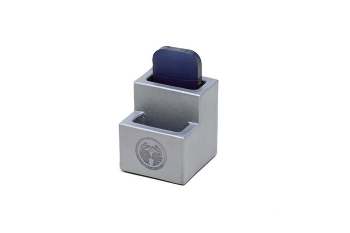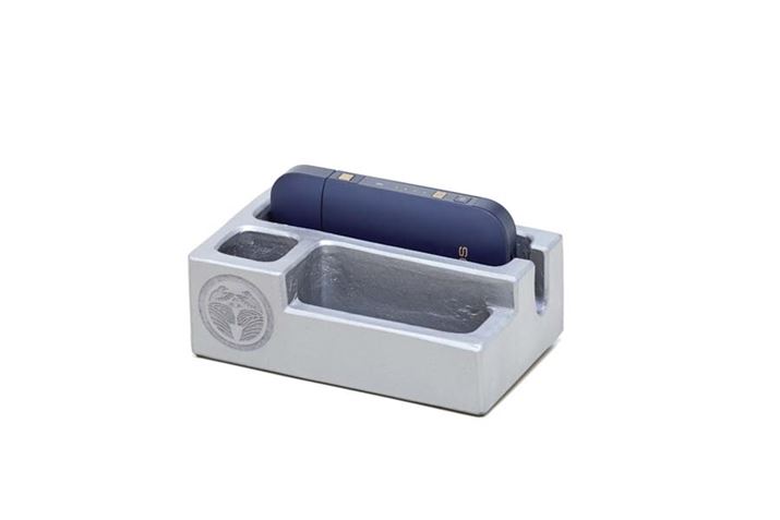 アイコス・ポケットチャージャーとたばこスティックを立てることができる瓦製の専用ホルダー。使用済みのたばこスティックを納めることも可能。価格は19,800円(税別)