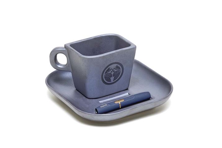 セラミック製のトレイとカップのセット。価格は3,980円(税別)と、コレクションの中ではかなりリーズナブル。トレイにはアイコスとたばこスティックを置くことができる