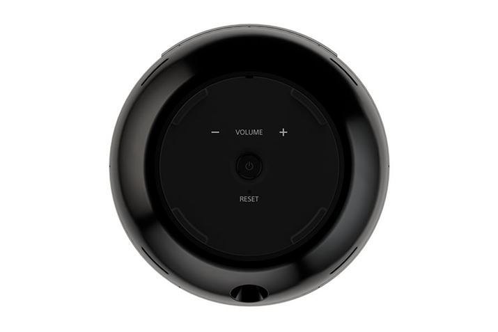 台座の裏には、ボリュームボタン、電源ボタン、リセットボタンが備わる。この台座部分が軸となり、上部の本体が340°の範囲で回転する