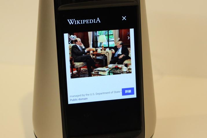 「○○について教えて」と伝えれば、Wikipediaの検索も可能。ディスプレイにWebページを表示するほか、テキストを読み上げてもくれる