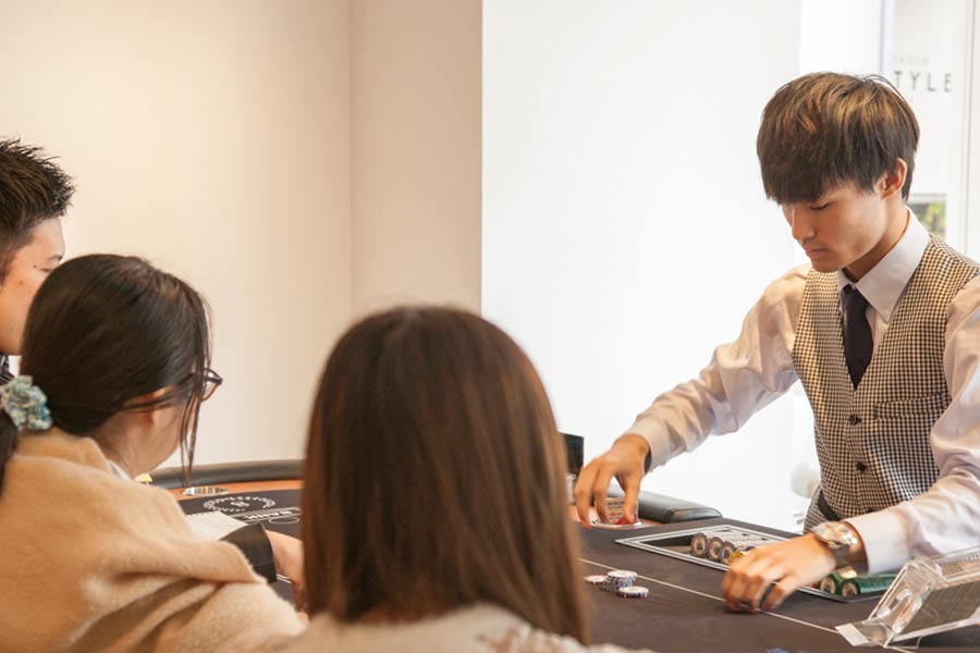 初回の授業では普通にゲームをプレイして楽しみ、2回目3回目以降はディーラー席に立ってさまざまな技術を習っていくらしい。