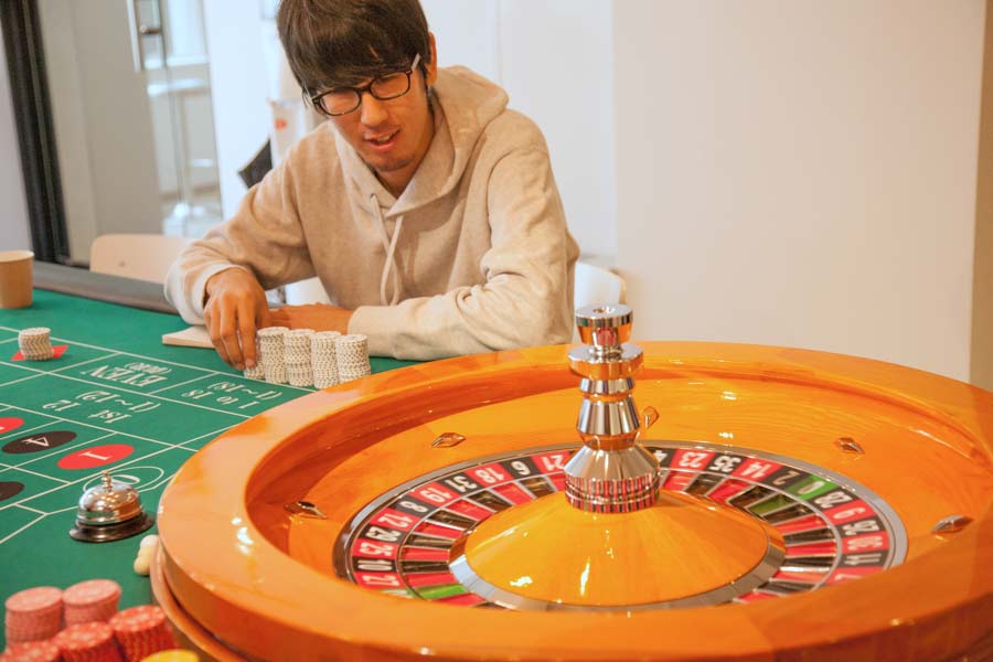 ただし回っている玉を見ながら予測してみても、もちろんなかなか当たらない。ルーレットには玉が当たるひっかかりがいくつもあるので、どこに落ちるのか予想しづらいのだ。やってみるとこれが思っていたよりも楽しい。玉が落ちるまでの一瞬の緊張感がたまらないし、ディーラーがストップの合図を出すタイミングを見極める駆け引きもおもしろい。