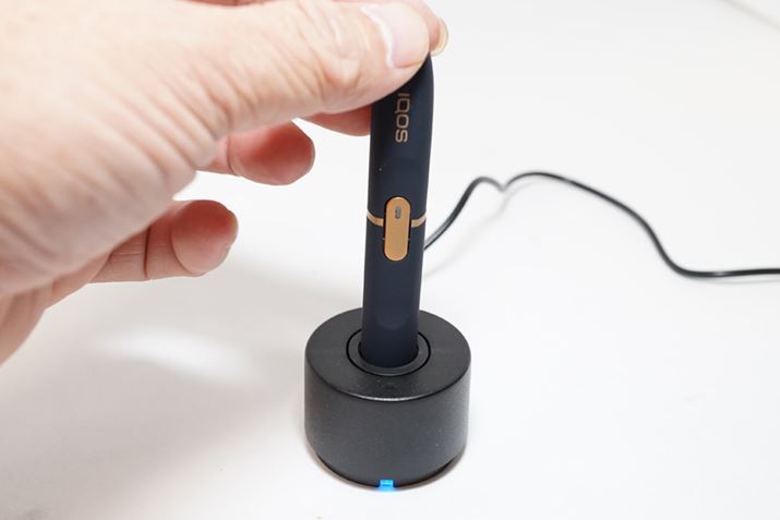 充電するにはアイコスホルダーをHOLDER-CHARGER for IQOS に挿し込みます。奥まで挿し込むとカチっと音がします