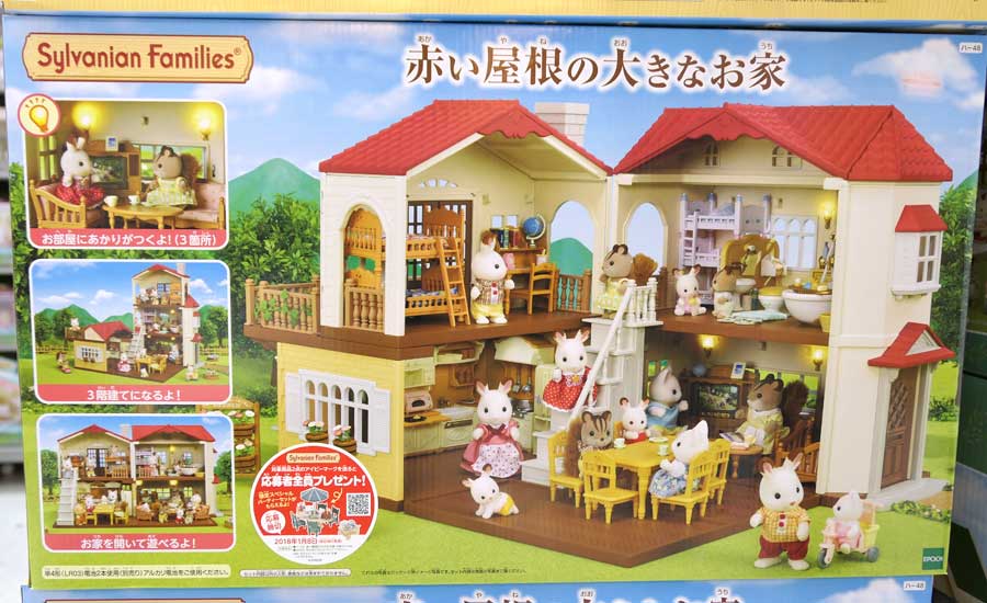 堀内さんコメント:「屋根の色が赤というところが、女の子の心をぐっとつかむようですよ。パーツがいろいろあるので小学生になっても遊べるほか、親子2代で楽しんでいるというお客さんもいらっしゃいます。また、“赤い屋根の大きなお家”は、“はじめてのシルバニアファミリー”と組み合わせて遊ぶことができるという点も人気です」