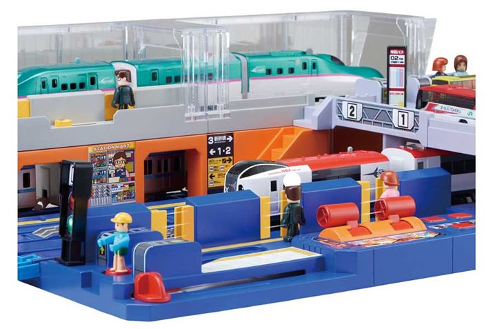 堀内さんコメント:「プラレール史上初のホームドアを備えた駅です。レバーを操作すると、車両の停車・発車などを自由にコントロールできるので、車掌さんごっこも楽しめます。本物の駅のようなサウンドを収録するなど、ギミックにこだわった駅です」
