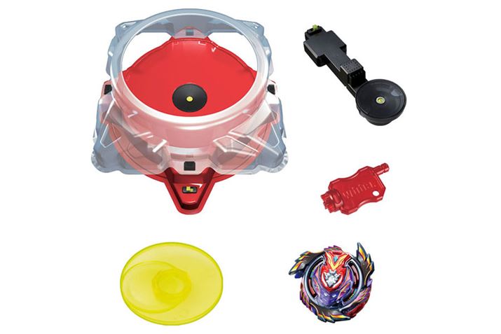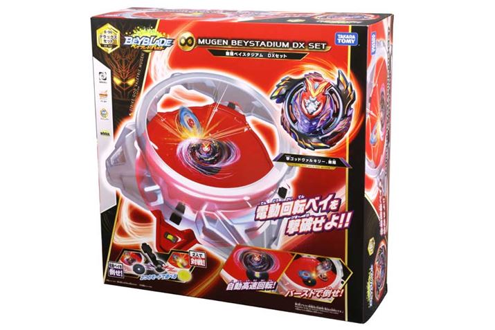 堀内さんコメント:「ベイブレードのスタジアムの、ギミックがついた豪華版です。中央にあらかじめずっと回っているベイが付属しています。ひとりでもトレーニングができるのが魅力です。モードをチェンジすれば2人対戦スタジアムとしても使用できます。同梱のベイは限定品ですよ!」