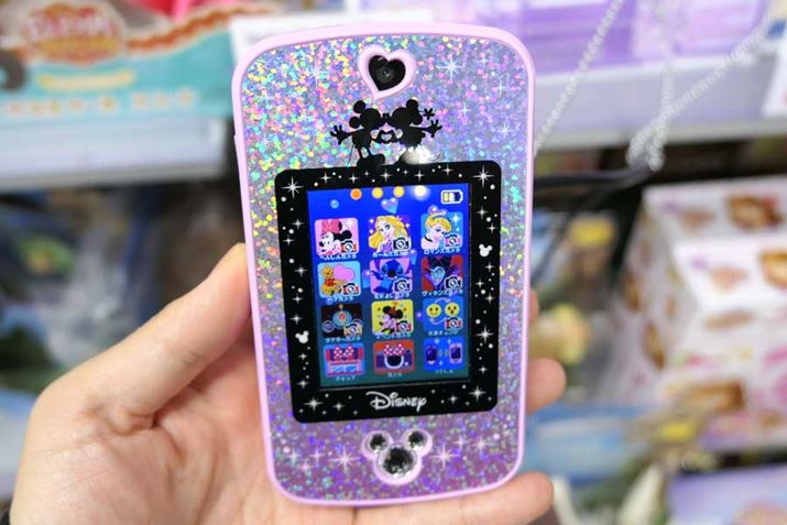 ディズニーキャラクターとコラボしたスマホ型のおもちゃです。カメラを搭載し、カラー液晶も備え、内蔵ゲームで遊ぶこともできます。