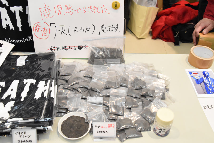 火山灰を売っていた「KagoshimaniaX」さんのブース。10g100円が高いのか安いのか一切わかりません