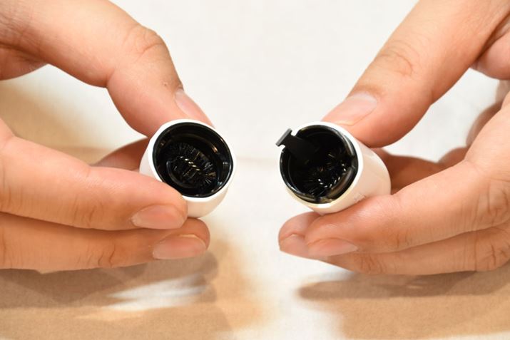 ホルダーの内部(左)もキャップの裏側(右)も、このくらいきれいに掃除できます