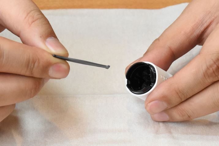 スティックの先が真っ黒になったら、スティックをひっくり返してもう片方の先を使用します。キャップ側も同じように掃除します。