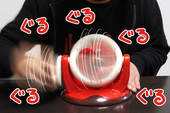 本体のハンドルを回すと、チョコを流し込んだ型が縦に横にグルングルン回転しまくり。