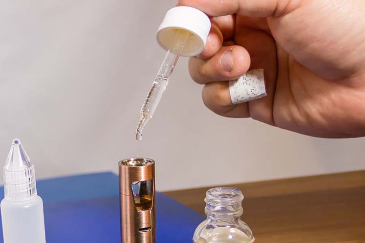 キャップにスポイトがついているものや、ボトル先端が尖っていて直接VAPEに注入可能なものなど、様々なものがある。誤ってテーブルにこぼしたり手についたりするとベタベタするので、リキッド注入の際は、アルコールタイプのウェットティッシュが必須だ