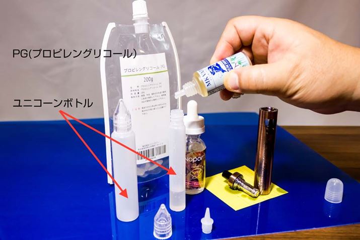 初めから失敗前提でなのも何だが、リキッド選びというものは失敗がつき物。そんな時にメンソールリキッドやPG・VGが活躍。ただし、ボトルに直接添加してしまうと、入れすぎた場合悲劇になる。なので、別途空のユニコーンボトルを用意しておき、そちらに移して試すと安心だ