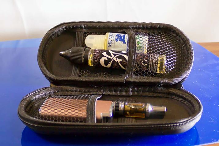 VAPE本体、リキッドともに持ち運ぶ際は、リキッド漏れの可能性はゼロではない。不測の事態に備えて、こうした電子タバコ用ポーチなどを活用したい。カバンの中、一面がベタベタの油汚れになると大変なうえ、スマホもPCも故障するので注意