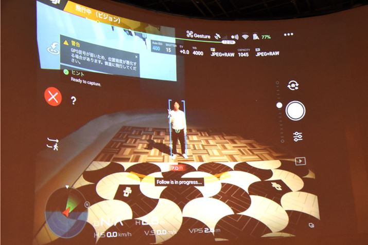 「Spark」の目玉機能であった操縦方法「スマートキャプチャー」も搭載。手のジェスチャーだけで、離陸から追尾、写真や動画の撮影、機体の前後操作までを、最大6mの認識範囲で行える。