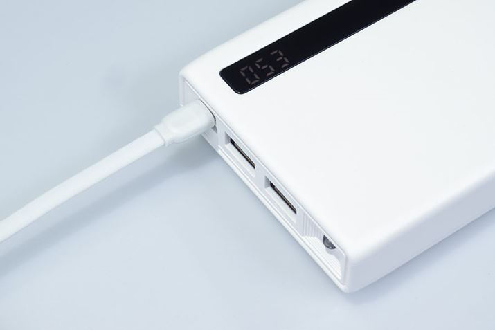 18000mAhの大容量バッテリーを搭載したモバイルバッテリー。給電用のUSB端子を2ポートを備えており、5V/2A(2ポート合計最大)の出力が可能だ。