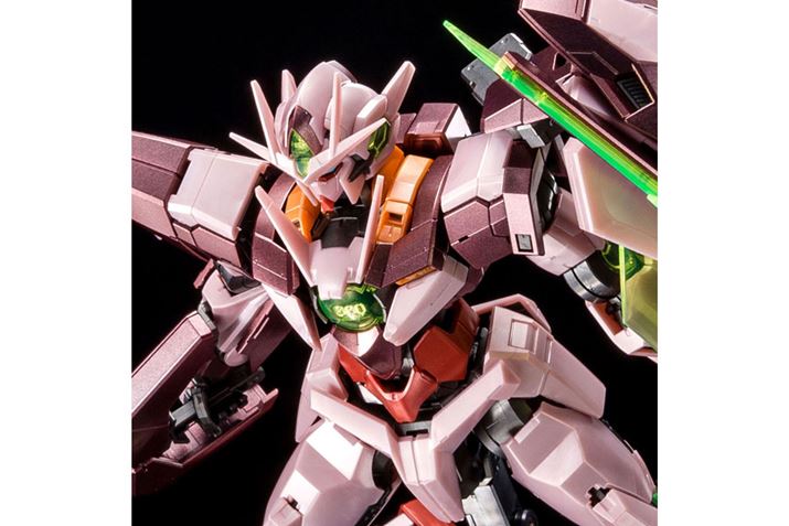 「MG 1/100 ダブルオークアンタ(トランザムモード)」は、「劇場版 機動戦士ガンダム00 -A wakening of the Trailblazer-」に登場した、トランザムを発動したイメージのダブルオークアンタを1/100スケールでキット化したモデル。光沢感や金属感を追求したメタリック成形色とパールコーティング仕上げといった加工を施し、赤く輝く機体を忠実に再現している。