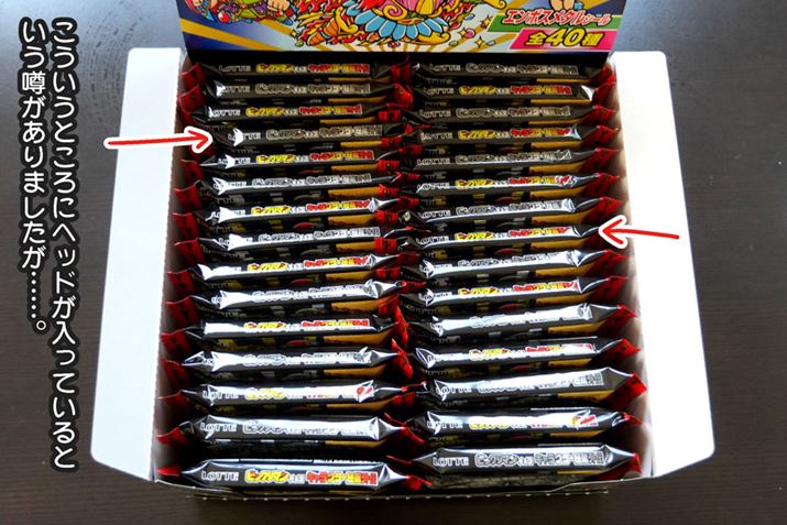 箱の左列のうしろから4番目を買うといいとか、右列の前から8番目がいいとか。緑より黄色いパッケージのほうがいいシールが出やすいとか、いろんな噂(うわさ)がありましたが…。アレ、本当だったんですかねぇ?