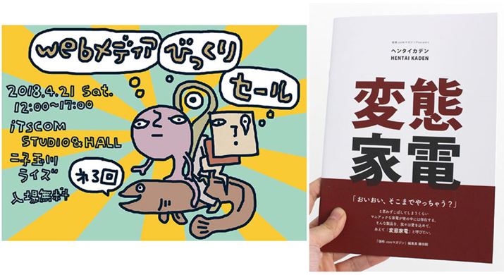 超人気ウェブメディア「デイリーポータルZ」さんが主催する展示・即売会「第3回ウェブメディアびっくりセール」に、価格.comマガジンがまた参戦します! 開催日は、2018年4月21日(土)。概要はこのあとポロポロ説明しますが、主旨を簡潔に言うとこうです→価格.comマガジンが家電の本を作ったから、みんな500円玉握りしめて二子玉に買いに来て!