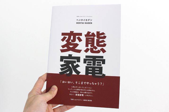 1冊あたり32ページ(A5版)の世界に、普段から家電情報に触れている我々が独自セレクトした、選りすぐりの変態アイテムたちが大集合。販売価格は、1冊あたり500円(税込・もちろん最安価格)です。しかも「変態家電」を買うと、以下のステキな特典が2つも付いてくるんです!