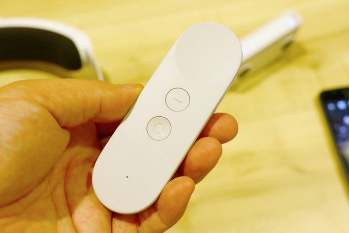 付属するモーション・トラッキング・コントローラー。上部がタッチパッドになっており、ゲームなどで利用する。人気映画「ブレードランナー」のVRゲーム「Blade Runner: Revelations」をプレイしてみたが、映画の世界に入り込んだようなリアルで没入感のある映像を楽しめた