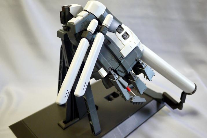 これを先ほどのブースターユニットを付けたスタンドに付けて本体部分が完成です。まさに足なんて飾りです。というモビルアーマーにも似たフォルムになりました