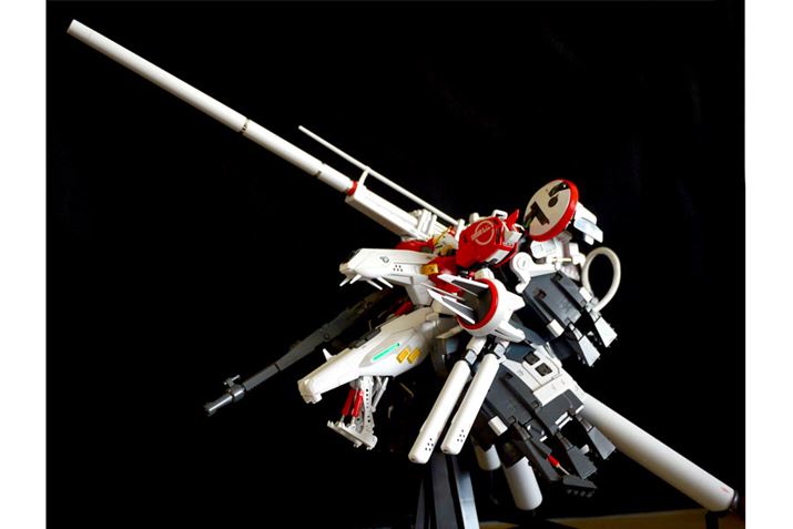 ここまででもかなりボリュームのあるスタイルですが、さらにここにIフィールド発生装置、長距離索敵用レドーム、巨大バックパック、戦艦のそれと同威力を持つメガ粒子砲を追加していきます。まるでケーキをどんどんデコレーションしていくような組み立て方だったのでとても楽しかったですよ。