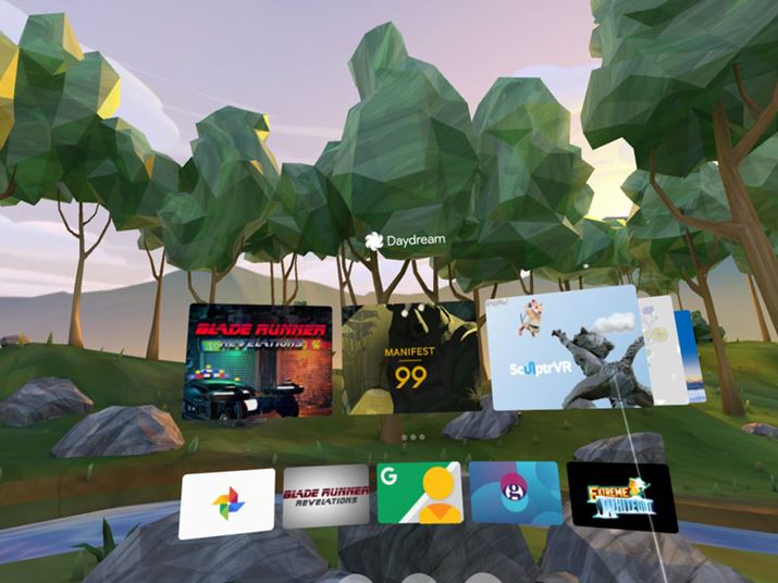 Daydreamのランチャー画面。パソコンのデスクトップ画面のようなもので、ここから利用したいアプリを起動する