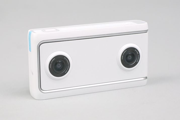 デュアル眼カメラのMirage Camera。360°カメラではないため、撮影者は映り込まないが、持ち方によっては指が入ってしまうので気をつけたい