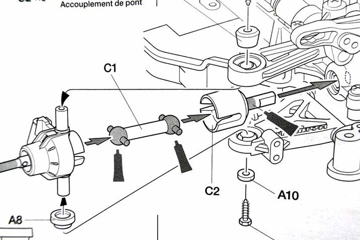 「C1」が折れてなくなった状態です。実際のクルマでいうと、駆動力を車輪に伝えるドライブシャフトにあたるパーツです