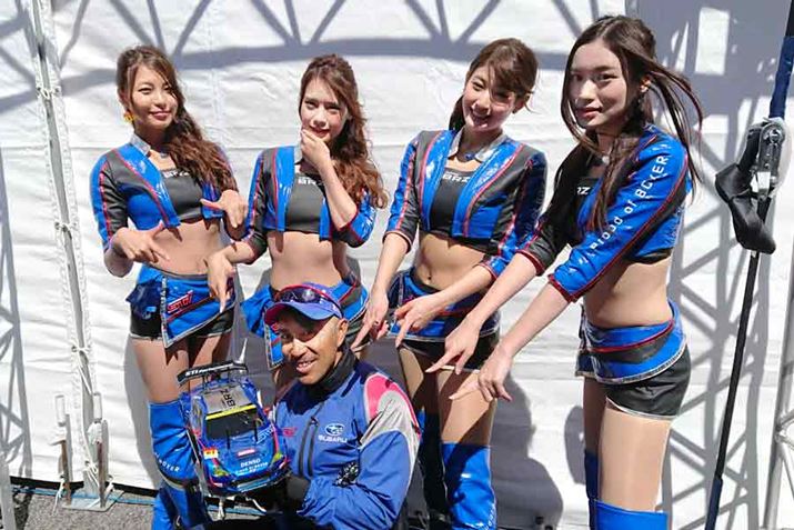 筆者が参戦するRCカーのレースにレースクイーンさんはいませんが、本物のレース現場で応援魂を注入してもらいました。ささやかな役得にて、ご容赦を!