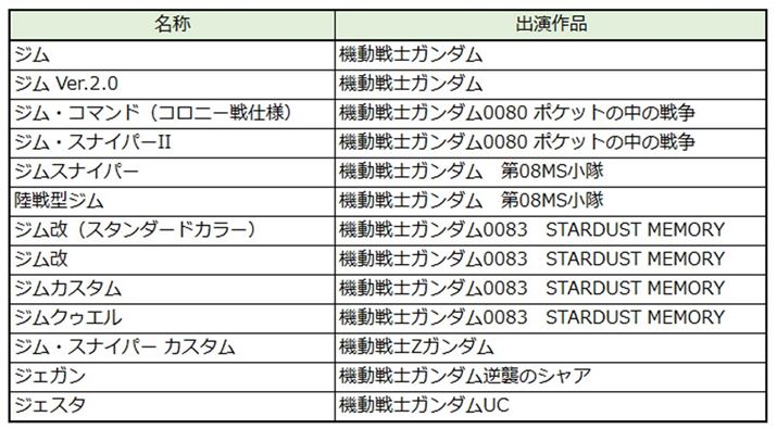 ■HGUC(ハイグレードユニバーサルセンチュリー)シリーズ ジム系統 ガンプラシリーズ一覧(一般販売品)