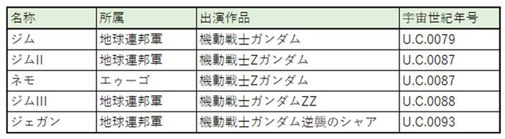 そんなジェガンですが、いわずと知れた地球連邦軍の量産型モビルスーツで、一年戦争時に登場したジム(GM)の後継機であります。劇中だとやはり、やられっぷりばかりが目立ってしまう量産型ですが、実はガンプラにおいては、このジム系のモビルスーツのバリエーションはとんでもなく多く、さまざまなタイプが発売されているのです。これはひとえにカスタマイズしやすいシンプルな機体と、量産型好きが制作側にも消費者側にも多いってことだと思うんですよね。実際にどのような種類があるのか、リストと筆者手持ちの量産型ガンプラなどでたどっていきたいと思います。