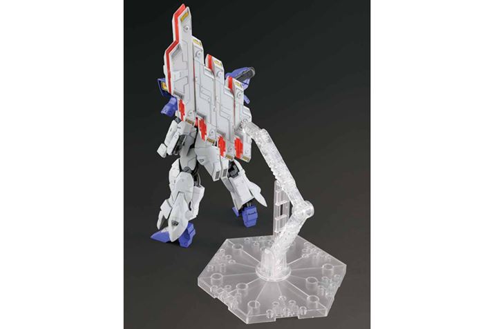 2018年放送のテレビアニメシリーズ「ガンダムビルドダイバーズ」の新オープニングシーンに登場している新機体をキット化。背部には、パネルの展開や砲身の伸縮、グリップの展開など、さまざまなギミックが搭載されている。バックパックはパーツを差し替えれば、一部HG 1/144 シリーズにも装備可能。