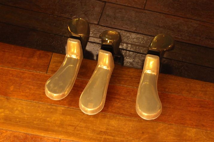 ペダルの中央を踏み込むと、生音が出ず電子音だけを響板スピーカーで鳴らすモードになる。ヘッドホンを使用するほどではないが、音量を絞って練習したいようなときに便利