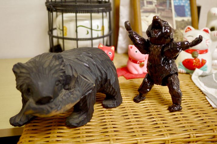 さて、皆さまこちらご存じですよね。筆者と同じ昭和世代なら北海道土産で一度は見たことあるのではないでしょうか? 「木彫りの熊」でございます。我が家にも、誰からもらったのか不明ですが、2つ飾られていました。