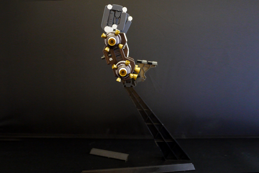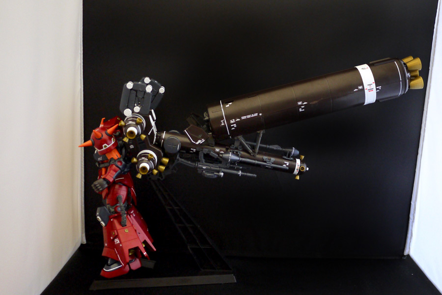 一見、ムチャクチャとも思えるロケットブースターパーツですが、スタンドと固定パーツによってしっかりと保持され、途中で抜け落ちるようなことはありませんでした。そしてこのインパクトある姿が最終決戦を思わせる圧倒的な存在感となります。