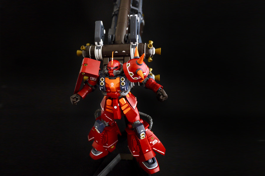 上から。ザクの深紅とロケットブースターパーツのブラウンがいい色合いです