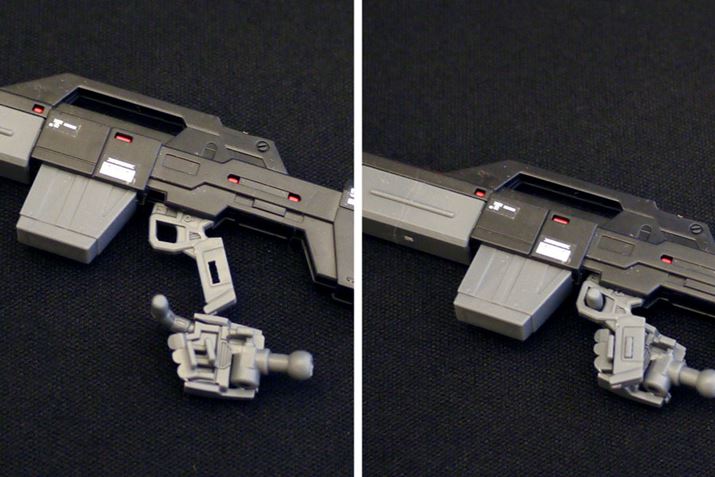 手のひらには武器を保持する穴などがないので、大型の武器を持たせるのにちょっと苦労します