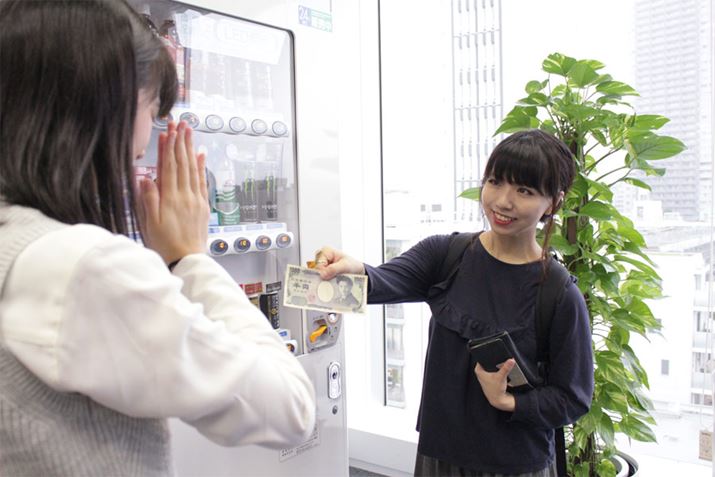 そのとき、しえるさんが自動販売機で飲み物を買いたいとなったのですが、大きいお札しか持っていなかったので、ペパーミントが1,000円を貸してあげたんですよ。