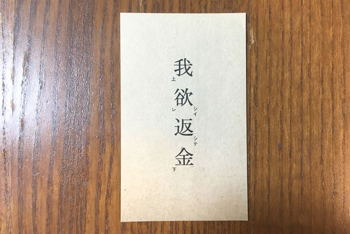 実はこれ、漢文になっていて「我金返シテ欲シイ」と読めるんですよ!