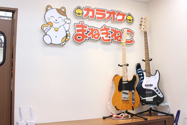 そこで、エレキギターやベースを弾きたい人にご紹介したいのが、カラオケ「まねきねこ」なんです! 店舗にギターやベース、アンプを常備していて、希望者に無料で貸し出してくれるというサービスを2018年春からスタートさせました。