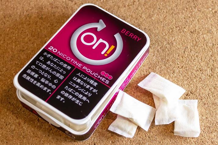 「オン」はタバコの味と香りをゼロにしようとしている、クセのなさが人気のブランドだ。ケースを開けた時に海外のお菓子のようなベリー風味が漂う。しかし、甘い香りとポップなルックスだというのに、実際に使用してみるとニコチンの辛味がかなり強烈で驚く。