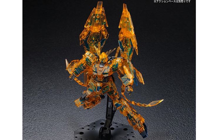 「HG 1/144 ユニコーンガンダム3号機 フェネクス(デストロイモード)(ナラティブVer.)[クリアカラー]」(3,100円)。先述の「HG 1/144 シナンジュ・スタイン(ナラティブVer.)[クリアカラー]」と同じく、映画の公開劇場と「THE GUNDAM BASE TOKYO」にて販売される。初回限定生産分のみ、映画のキービジュアルを使用した限定パッケージを採用
