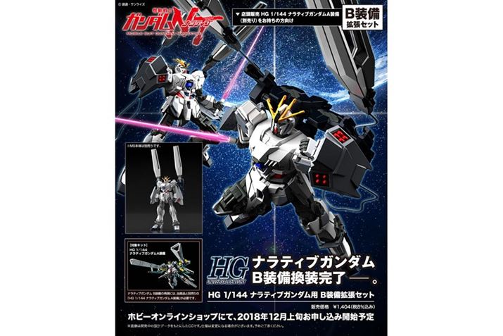 「HG 1/144 ナラティブガンダム用 B装備拡張セット」のティザーサイト。「B装備」を再現するには、先述の「HG 1/144 ナラティブガンダムA装備」が別途必要だ