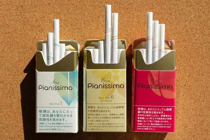 愛らしいパッケージで、男性、特に中高年男性を拒否っているとしか思えないルックス。徹底して女性スモーカーを意識したタバコブランドが、「ピアニッシモ」である。往年のサーファータバコの代名詞「セーラム」から分派して、2015年から国内生産されているシリーズだ。その名の通り、“きわめて弱く”が特徴で、LSS(Less Smoke Smell)タバコ(旧名称・D-spec ※煙とニオイを少なくした低臭タバコのこと)の代表格と言える。