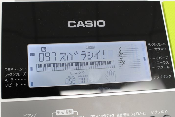 演奏が終わると、できがイマイチだったときは「モウイチド!」、よく弾けたときは「スバラシイ!」と表示して評価してくれるのも楽しい